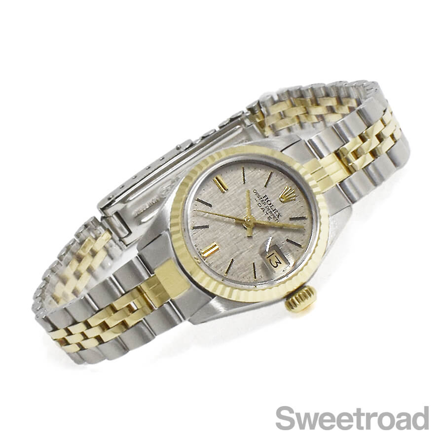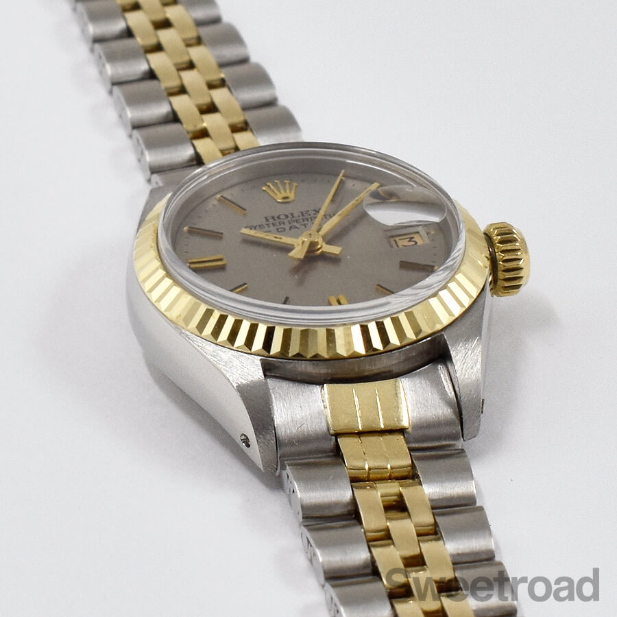 珍しい絹目仕上げのグレーダイヤルが採用された、ロレックスのレディースモデル「オイスターパーペチュアルデイト/Ref. 6917」が入荷しました。