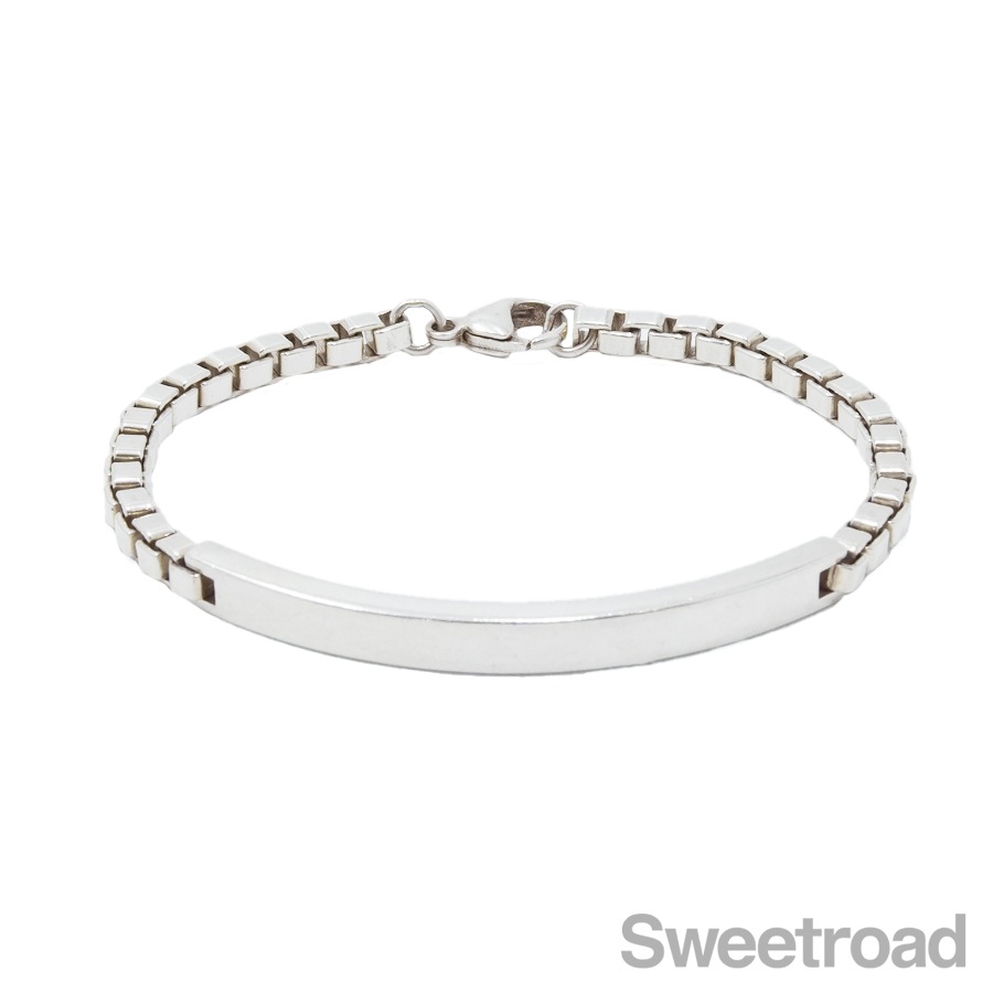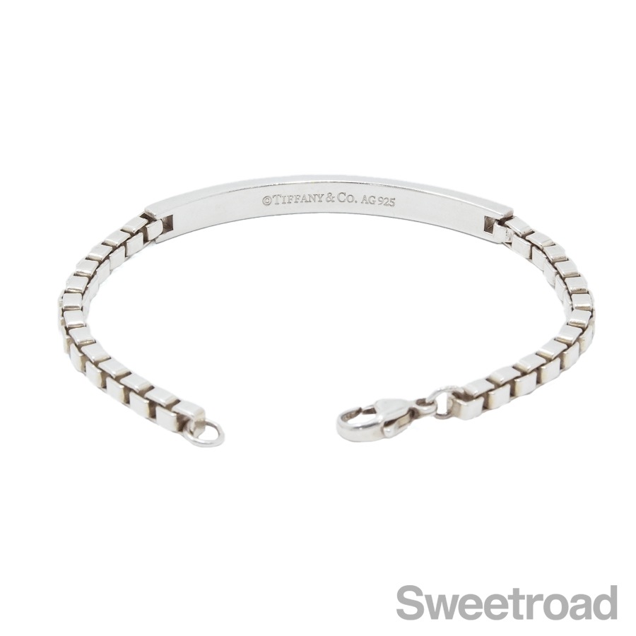 古代ローマのアーチからインスピレーションを得たリンクが優美に絡み合った「ベネチアンリンクIDブレスレット」。 ティファニーで定番のベネチアンリンクにナロープレートが組み合わさったデザインで、ユニセックスでお使いになれるアイテムです。 手首周り17.0cmくらいまでであれば余裕を持って身につけることができます。シルバー特有の小傷がございますが、過度なダメージは見られません。 ブランド名や素材を表す刻印もしっかりと残っています。