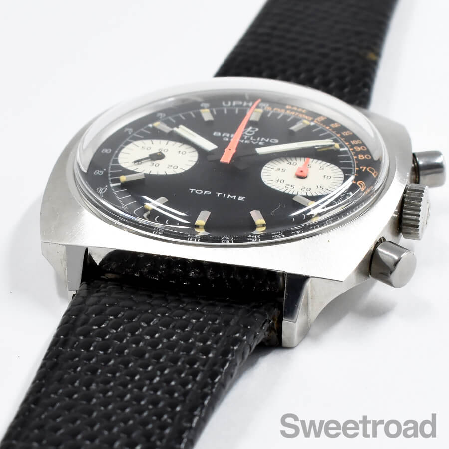 デカ厚なクッションケースと楕円形のインダイヤルが採用された、ブライトリングの「トップタイム」が入荷しました。