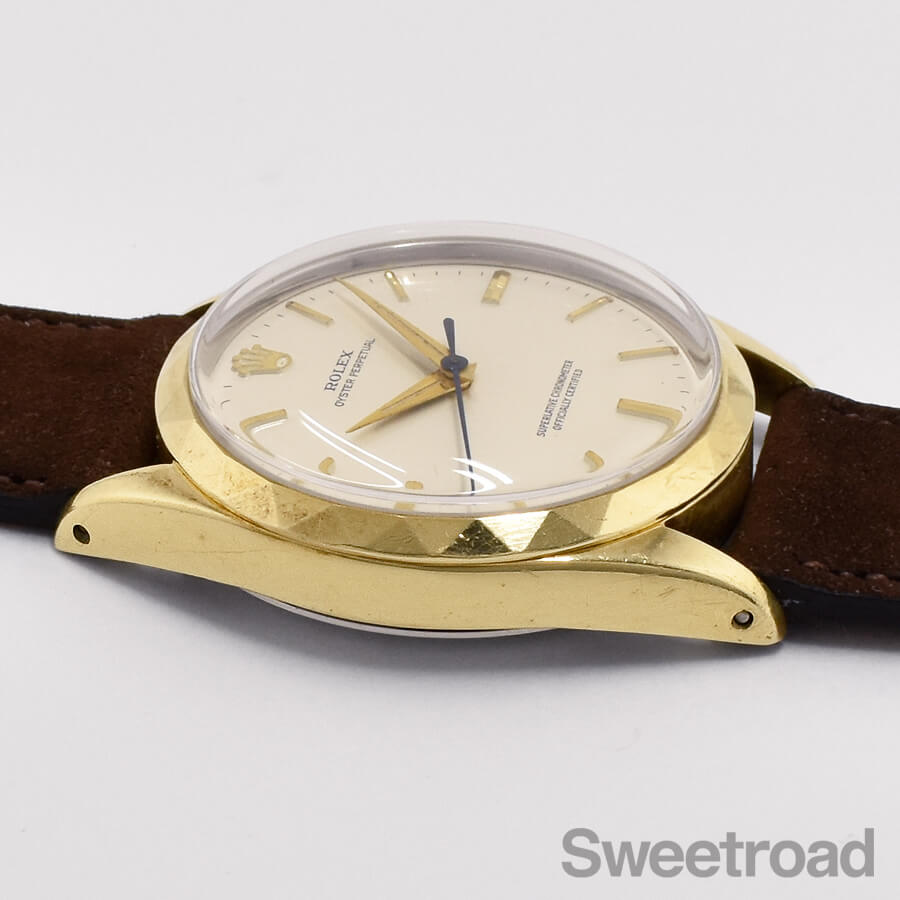 オイスターケースのプロポーションは維持されており、トライアングルベゼルのカットも感じられる良いコンディションです。