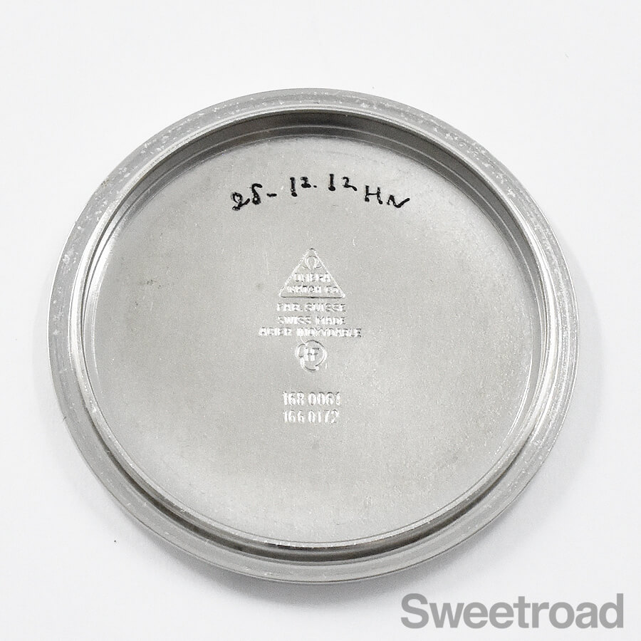外装は細かな小傷が見受けられるものの、エッジやヘアラインの質感は残っており、ケースフォルムが維持された良好なコンディションです。