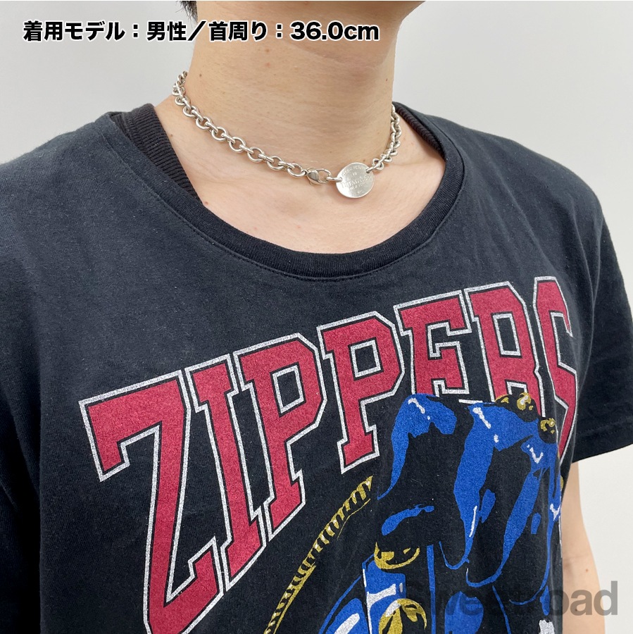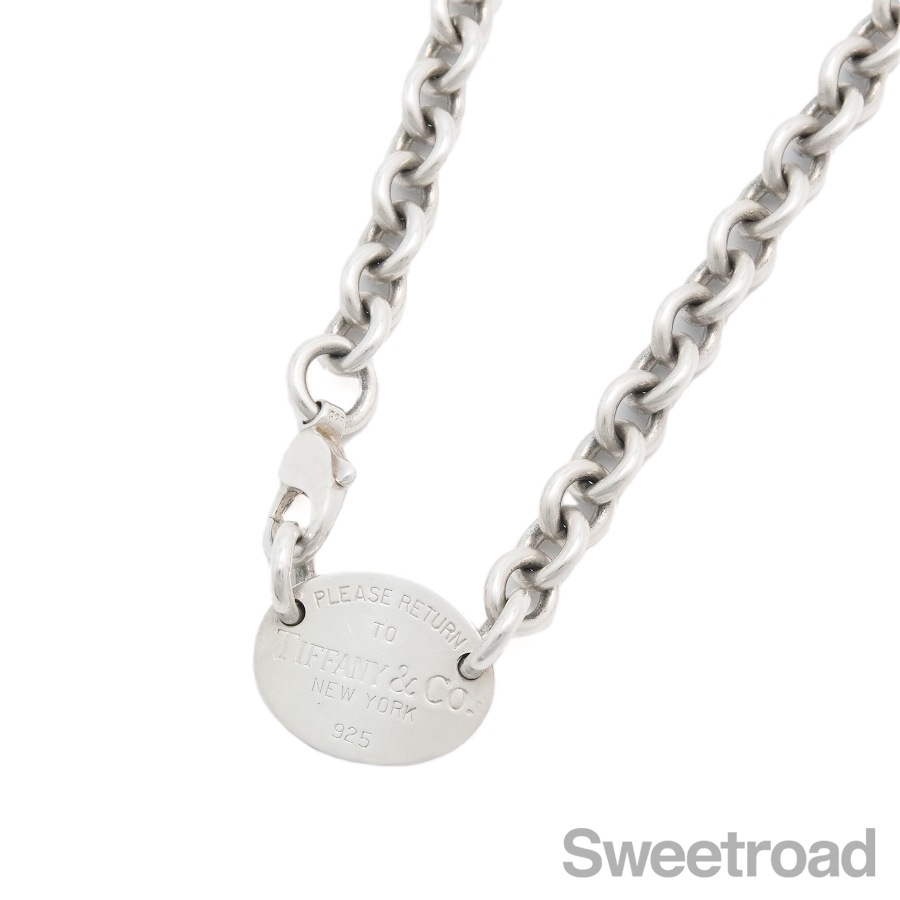 リターン・トゥ・ティファニーコレクションの一つ「オーバルタグ・チャーム・チョーカー」。 アイコニックなオーバルダグに、ボリュームのあるドーナツチェーンが印象的なネックレスです。 男女問わず身につけやすいユニセックスなアイテムで、シルバー特有の小傷こそございますが、全体的に目立つようなダメージは見られません。 ブランド名や素材を表す刻印もしっかりと残っています。