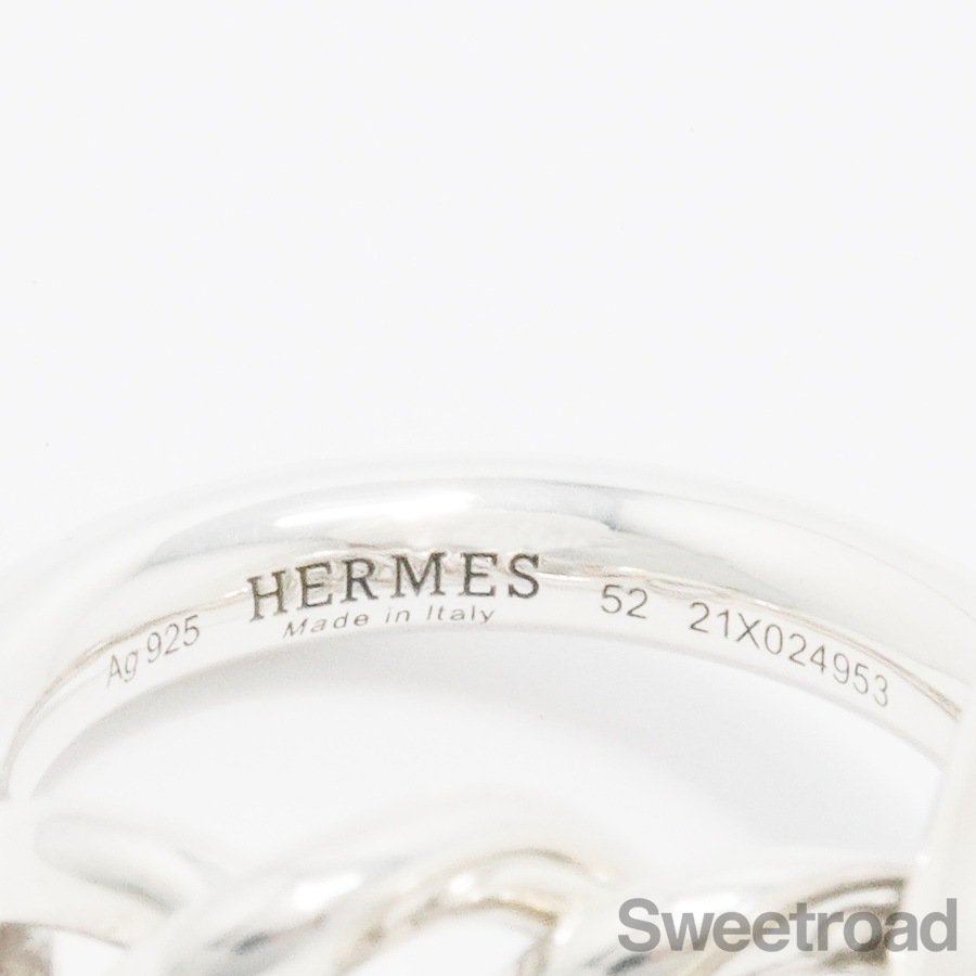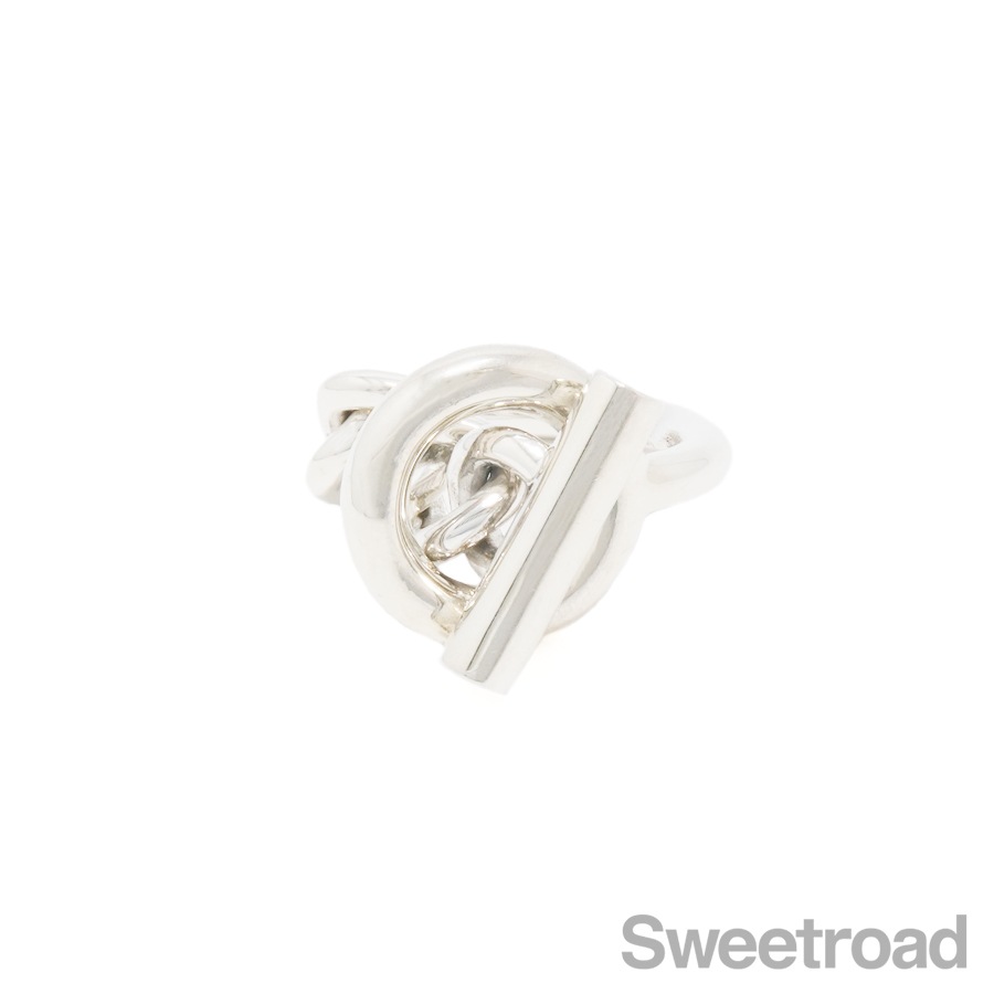 エルメス伝統のトグル状のクラスプが魅力的な「クロワゼットリング」が入荷しました。ボリューム感があり、絡み合ったトグルチェーンがエルメスらしいユニセックスなモデルです。シルバー特有の小傷こそございますが、全体的に目立つようなダメージは見られません。本商品は52サイズですが、円形状ではないため10〜9号くらいの装着感です。 ブランド名や素材を表す刻印もしっかりと残っています。