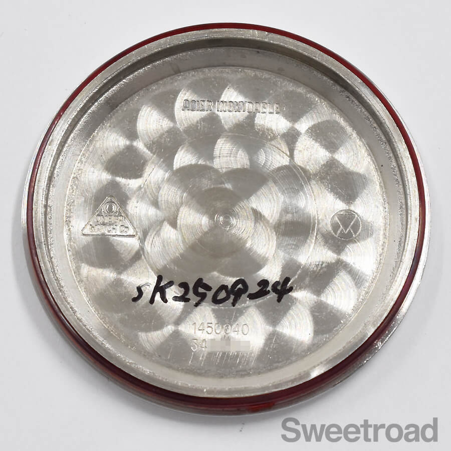 インデックスに若干の経年、短針夜光にわずかなひび割れが見受けられますが、着用時に気になるような状態ではありません。