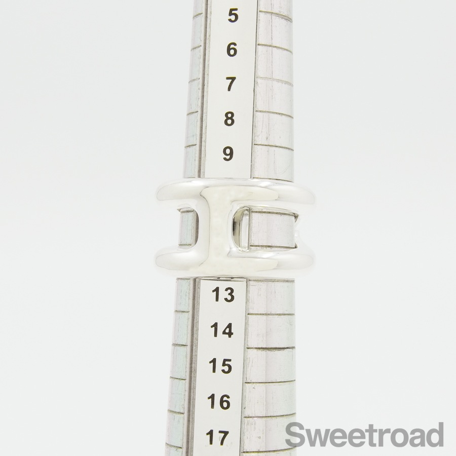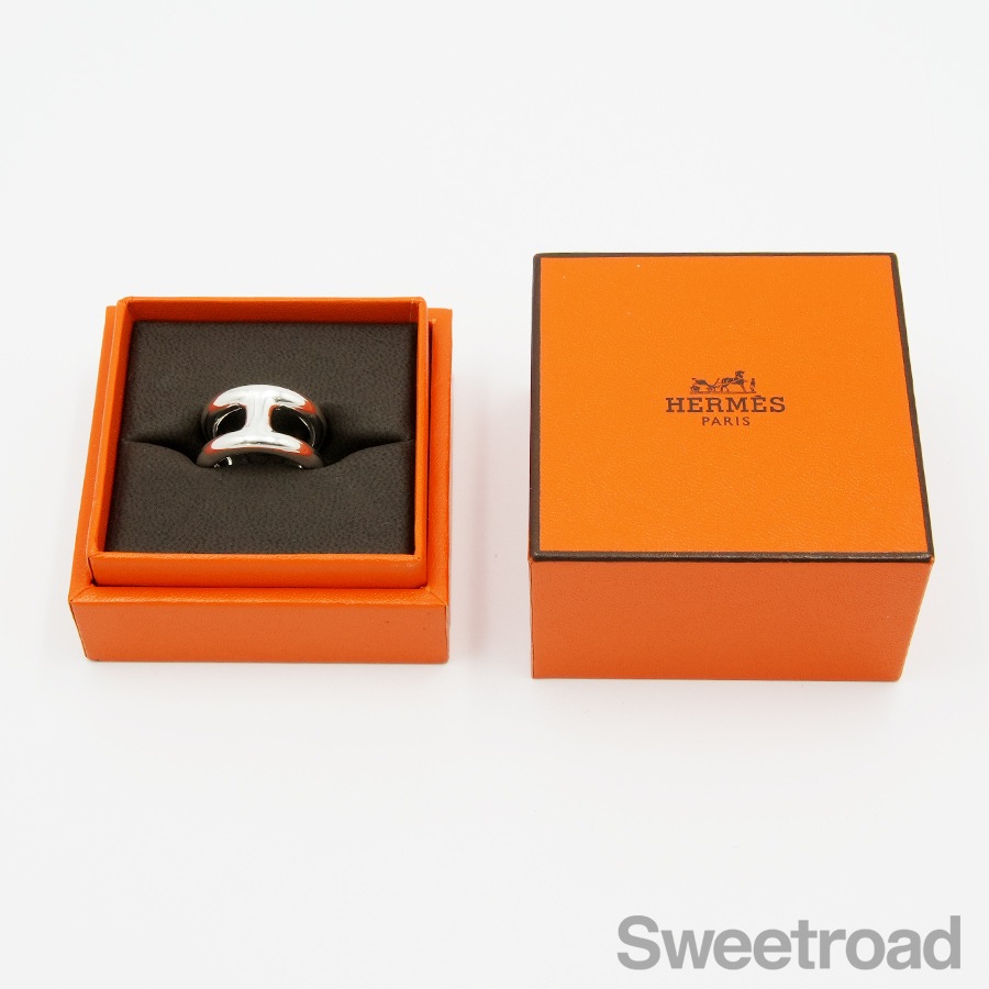 エルメスの人気モデル「オスモズリング」が入荷しました。ロゴの大きな「H」の形を巻きつけたような一目でエルメスとわかるデザインが目を惹きます。シンプルながらもしっかりと主張するデザイン性の高さが魅力的で、 男性でも女性でも着けやすいユニセックスなアイテムです。 シルバー特有の若干の小傷はございますが、全体的に綺麗な状態を保っています。本商品は、純正BOXが付属します。