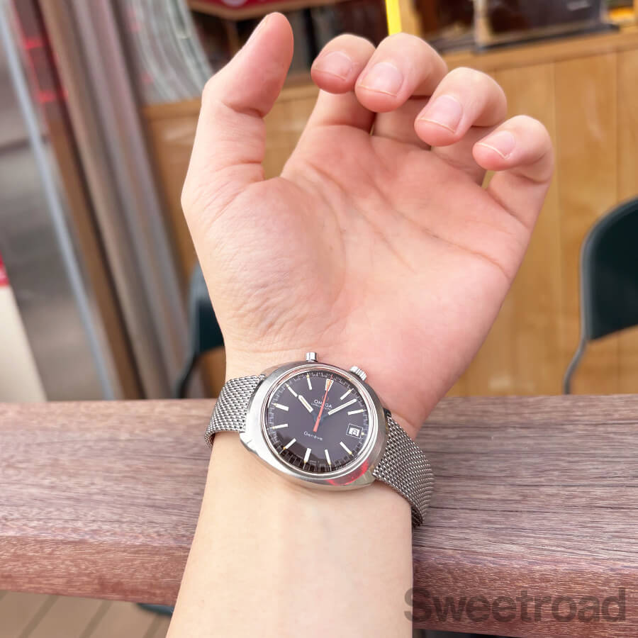 ベルトは、貴重なオメガ純正のメッシュブレスを装着しています。