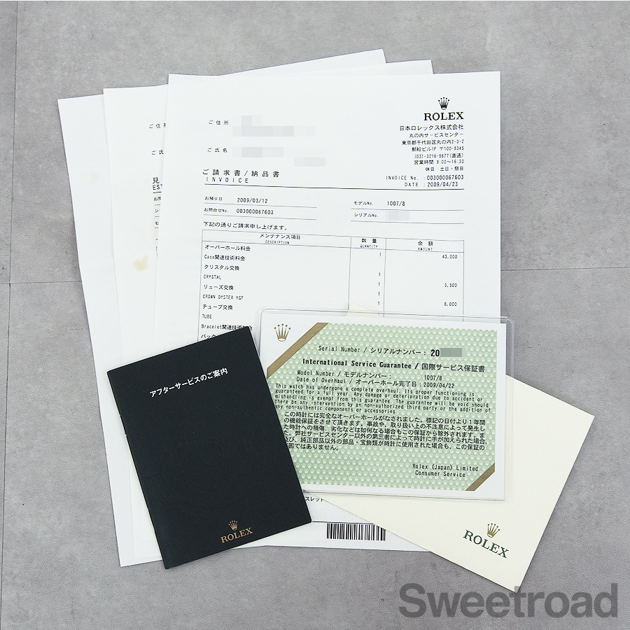 2009年にメーカー修理が行われており、その際の国際サービス保証書(期限切れ)や明細書が付属します。