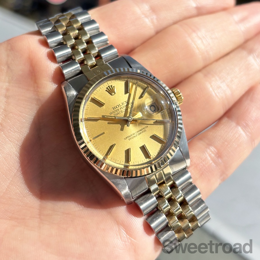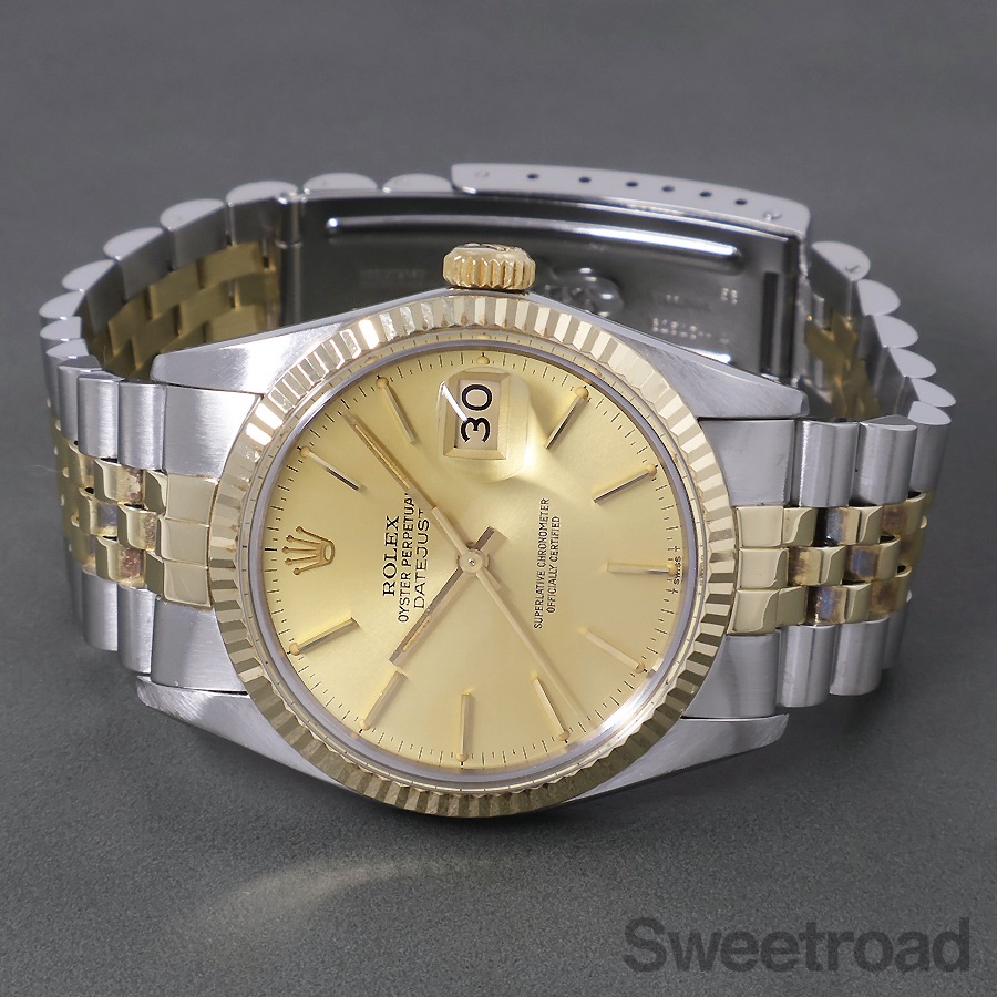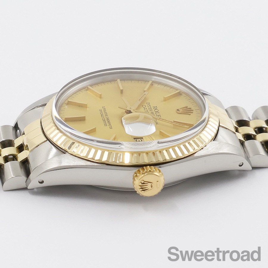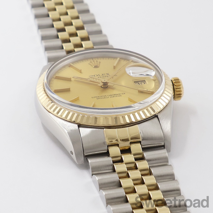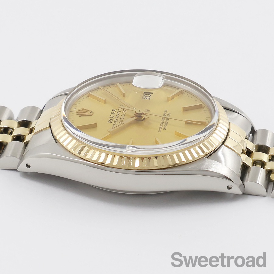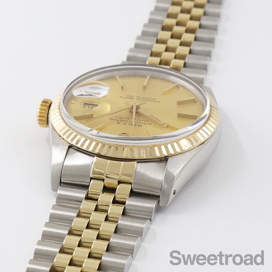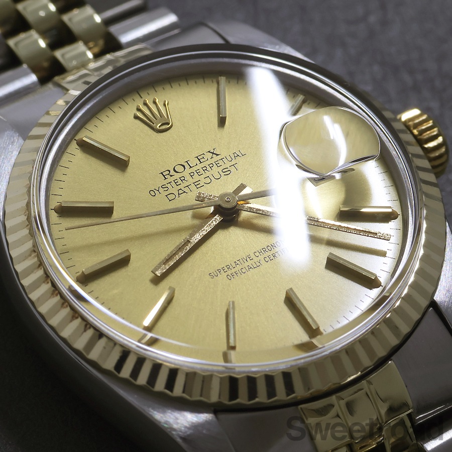 YGコンビ仕様のロレックス高級機「デイトジャスト/Ref.16013」が入荷しました。 「Ref.1601」の後継機として登場し、文字盤は現代的でスタイリッシュなフラットに変わり、クイックチェンジ機能を備えた「Cal.3035」が搭載されるなど実用性も向上したモデルです。