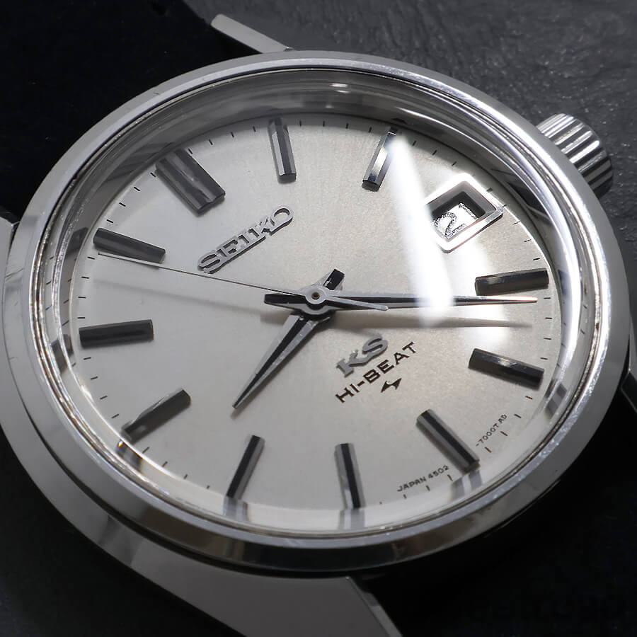 1969年に製造されたキングセイコー「45KS/Ref.4502-700」が入荷しました。 亀戸精工舎が、グランドセイコーの諏訪に劣るものではないことを示すために、当時の技術力を注ぎ込んだモデルで、キングセイコーで初のハイビートムーブメントを搭載したモデルです。