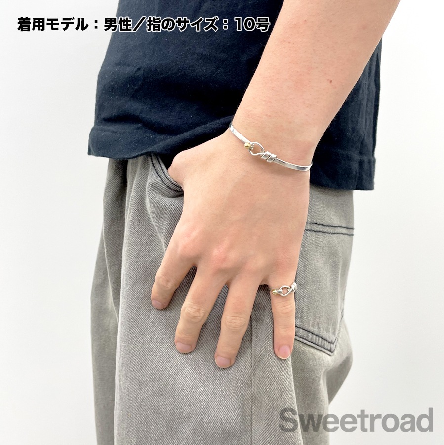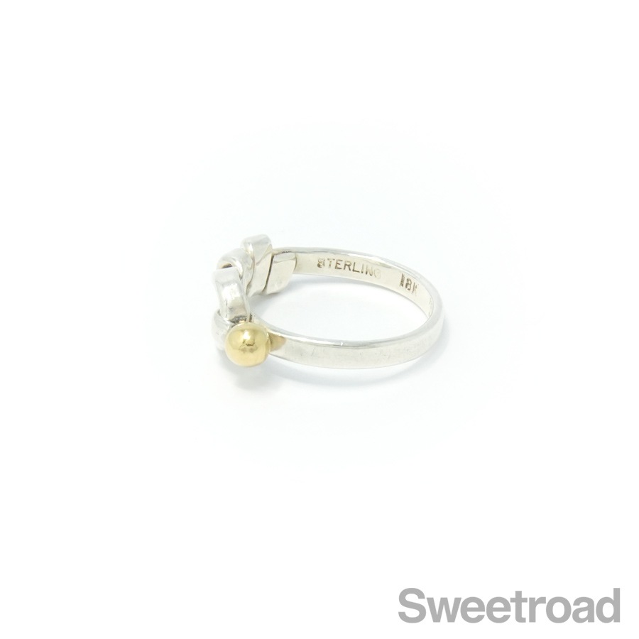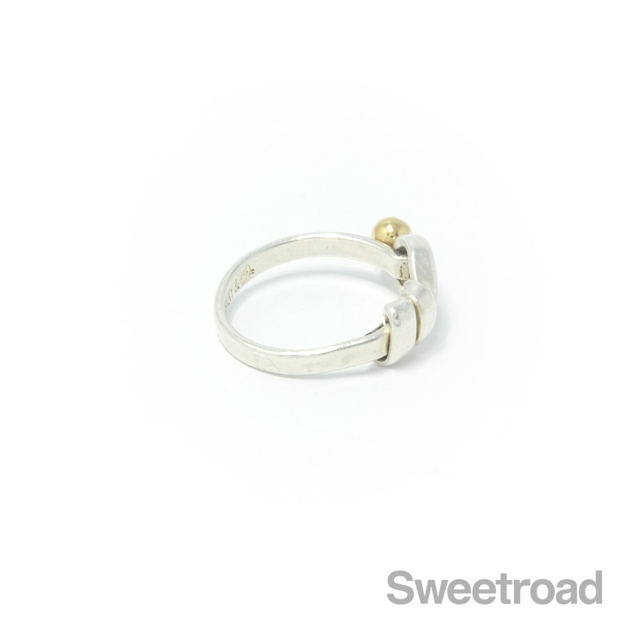 ティファニーコレクションの中でも高い人気を誇る「フックアンドアイシリーズ」の「フラットワイヤーリング」。ティファニーならではの独創的なデザインに、さりげなく主張する18金イエローゴールドが印象的なアイテムです。お揃いのバングルと身につけるのもおすすめです。シルバー特有の小傷こそございますが、全体的に目立つようなダメージは見られません。内側の刻印はしっかりと残っています。