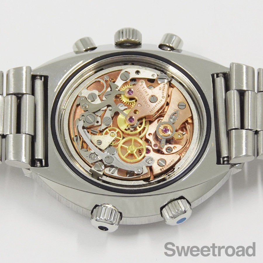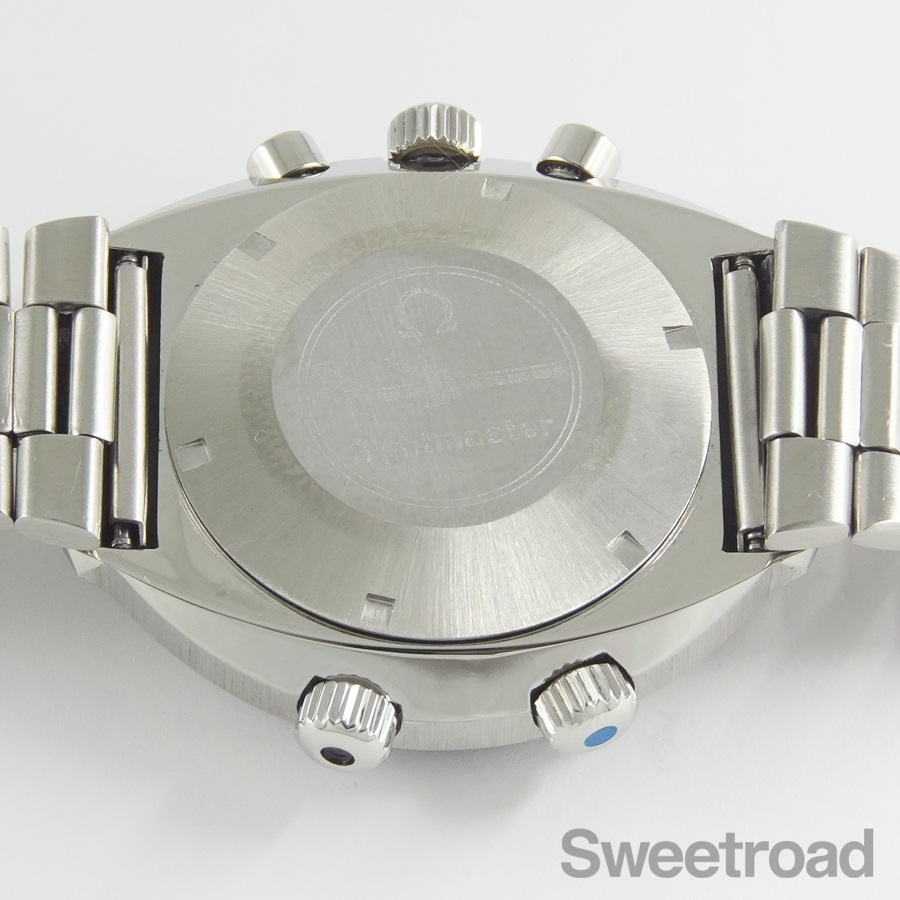 ベルトは、貴重なオメガ純正の3連ステンレスブレスを装着しています。