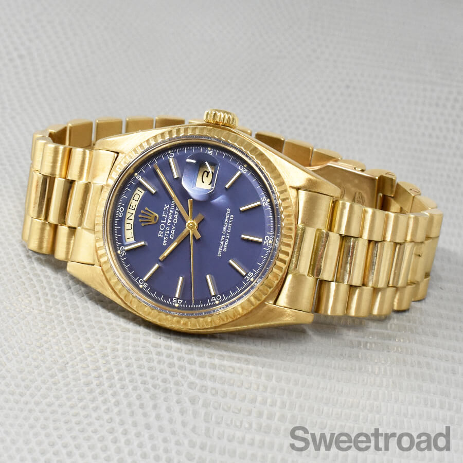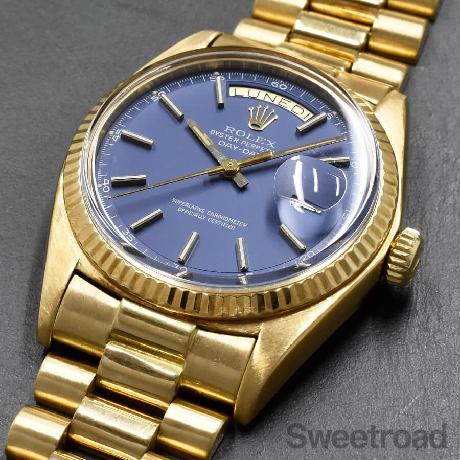 マットな質感のブルーダイヤルが目を惹く、ロレックスの最高峰モデル「デイデイト/Ref.1803」が入荷しました。