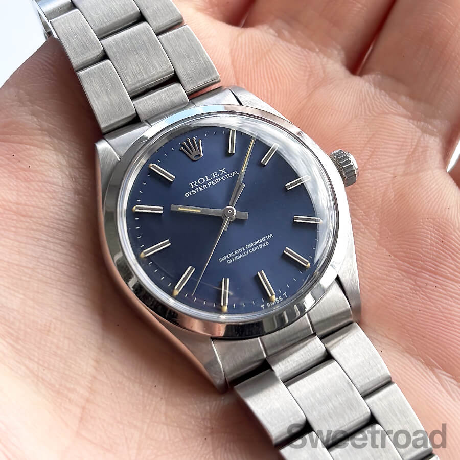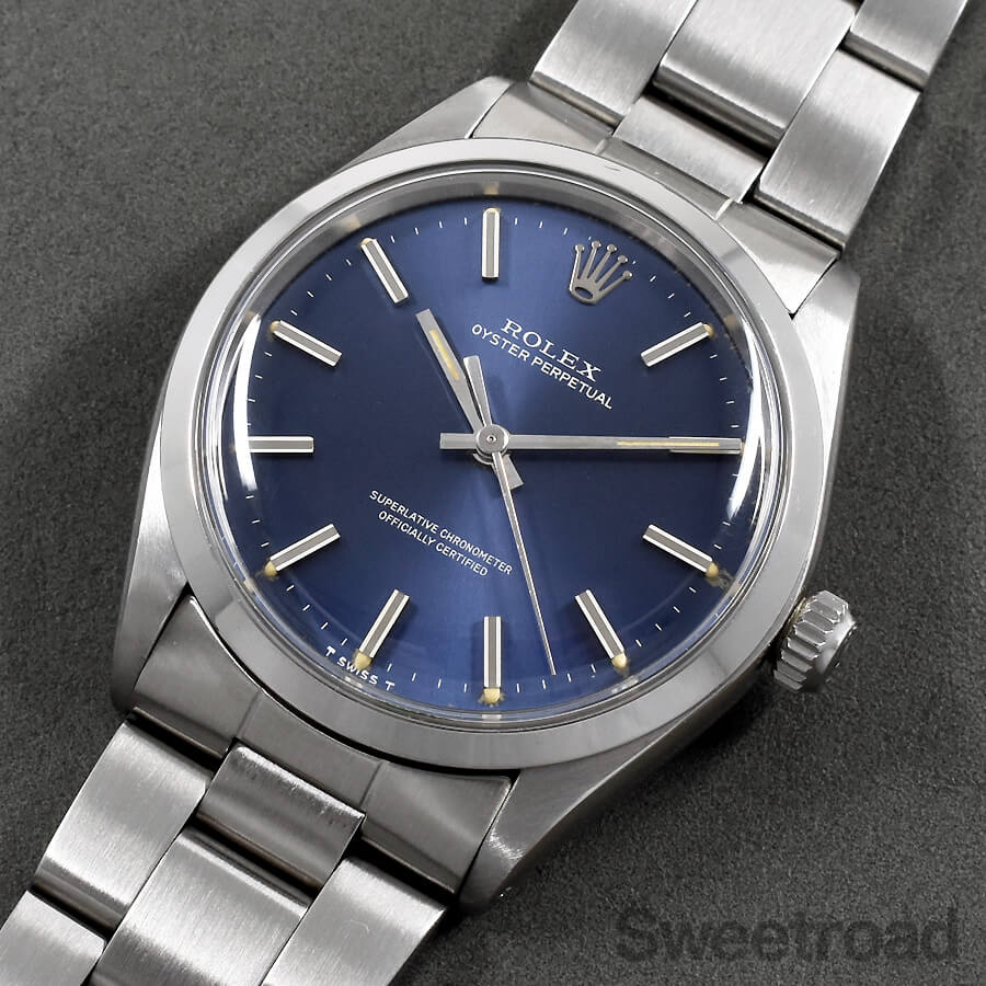 希少性の高いオリジナルのブルーダイヤルが目を惹く、ロレックスのノンデイト自動巻モデル「オイスターパーペチュアル/Ref.1002」が入荷しました。