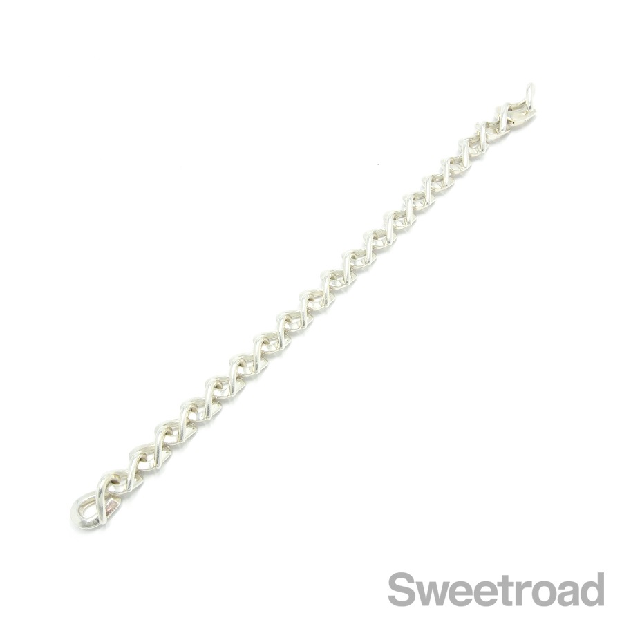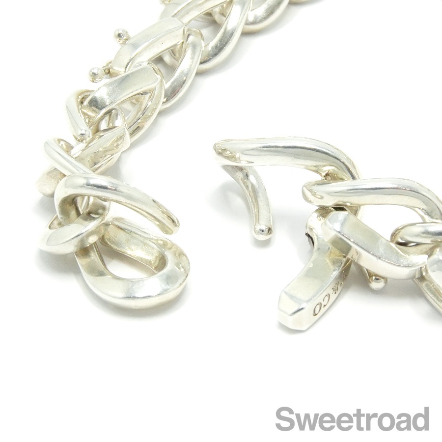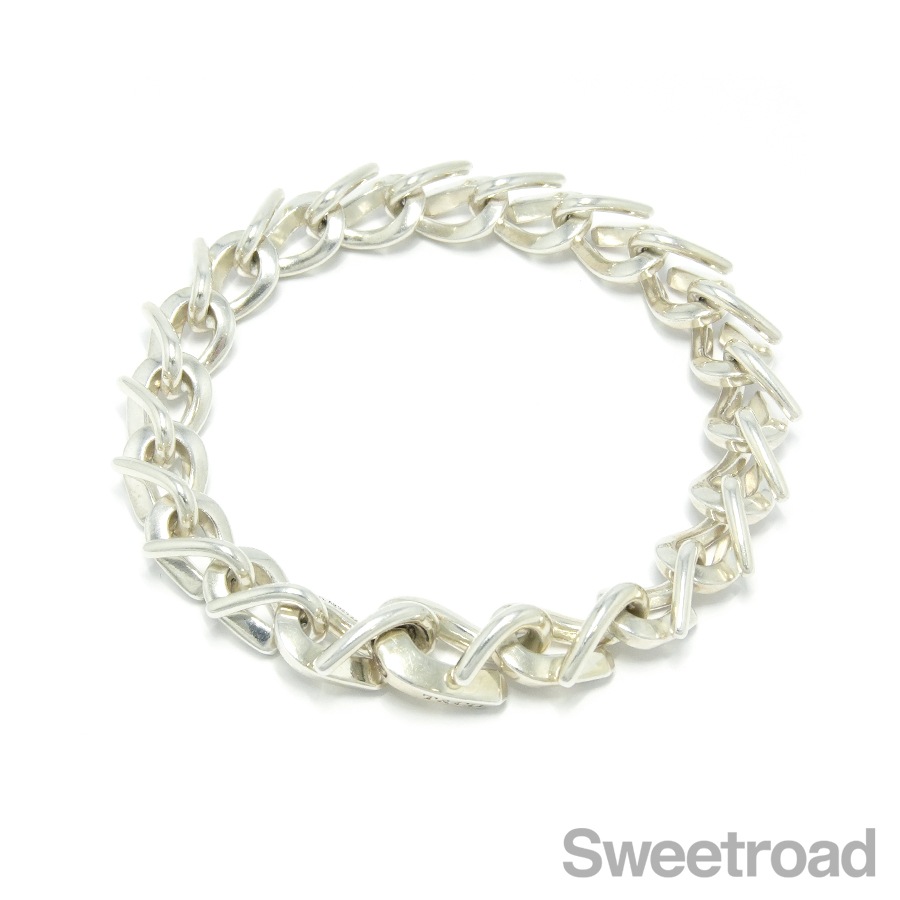 定番のチェーンに新たなアレンジを加えて誕生した、ティファニー・フォージコレクションより「フォージレスレット」が入荷しました。本商品は人気の「ミディアム」サイズの個体です。無骨な雰囲気と、ティファニーらしい上品な雰囲気も持ち合わせたデザインが目を惹きます。男性も女性も身につけやすい、ユニセックスなアイテムなところも魅力的です。手首周り16.0cmくらいまでであれば余裕を持って身につけることができます。シルバー特有の小傷こそございますが、雰囲気を損なうようなダメージは見られず、全体的に綺麗な状態です。ブランド名や素材を表す刻印はしっかりと残っています。ご購入時には、純正BOXが付属します。