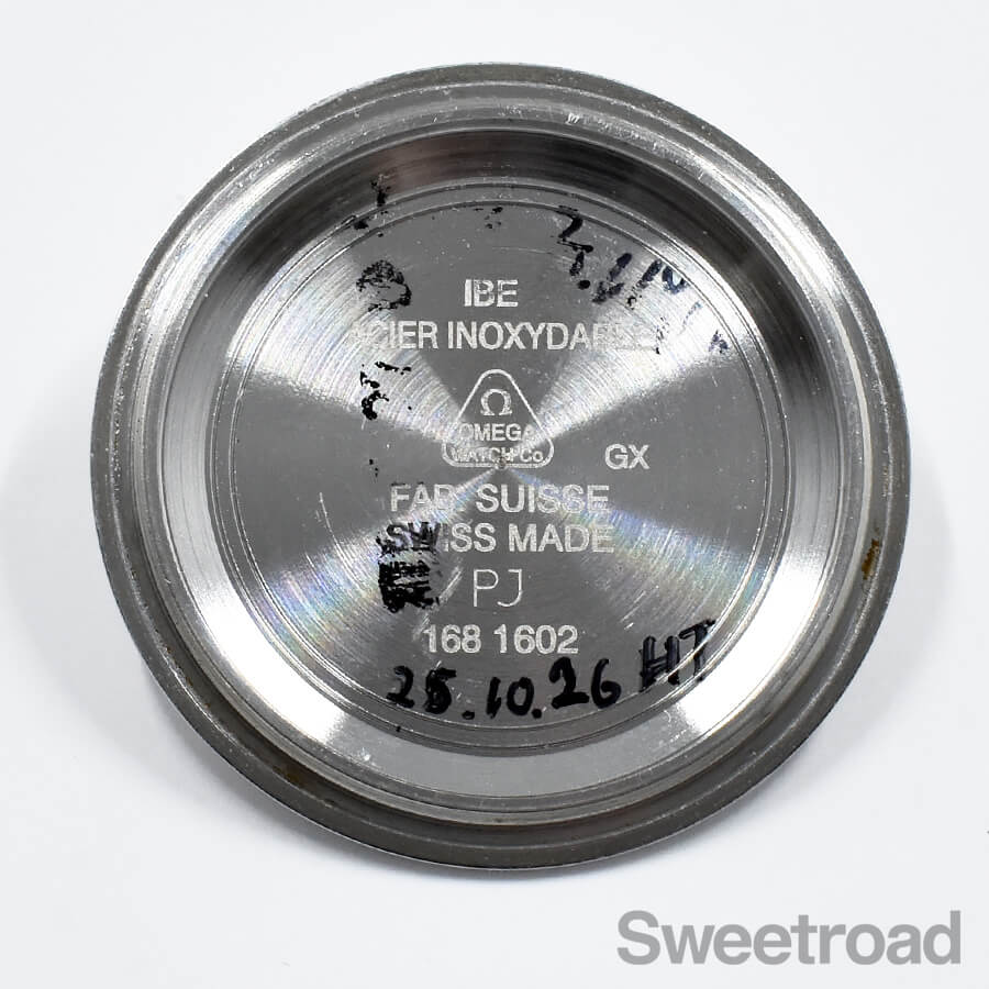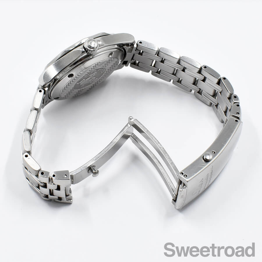 ベルトはバタフライクラスプが採用された、オメガ純正のステンレスブレスを装着しており、手首周り15.0cm~16.5cmまでの方であれば装着可能です。