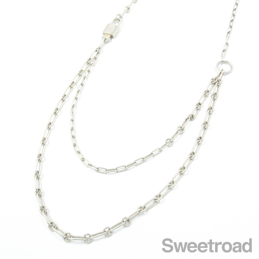エルメスの中でも希少性が高い「アルファケリー・ロングネックレス」が入荷しました。留め具はエルメスらしいカデナ(南京錠)が採用されており、着け外しがしやすく、どんなファッションにも合わせやすいユニセックスなアイテムです。シルバー特有の若干の小傷こそございますが、全体的に目立つようなダメージは見られません。ブランド名や素材を表す刻印もはっきりと残っています。