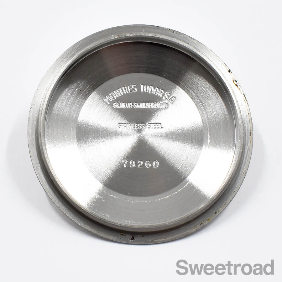 裏蓋内側の刻印は「Ref.79260」です。 ※当時、チューダー(ロレックス)はケースと裏蓋を別々に製造しており、同型のケースが採用されている79280に79260の裏蓋が使用されているパターンは多く見受けられます。