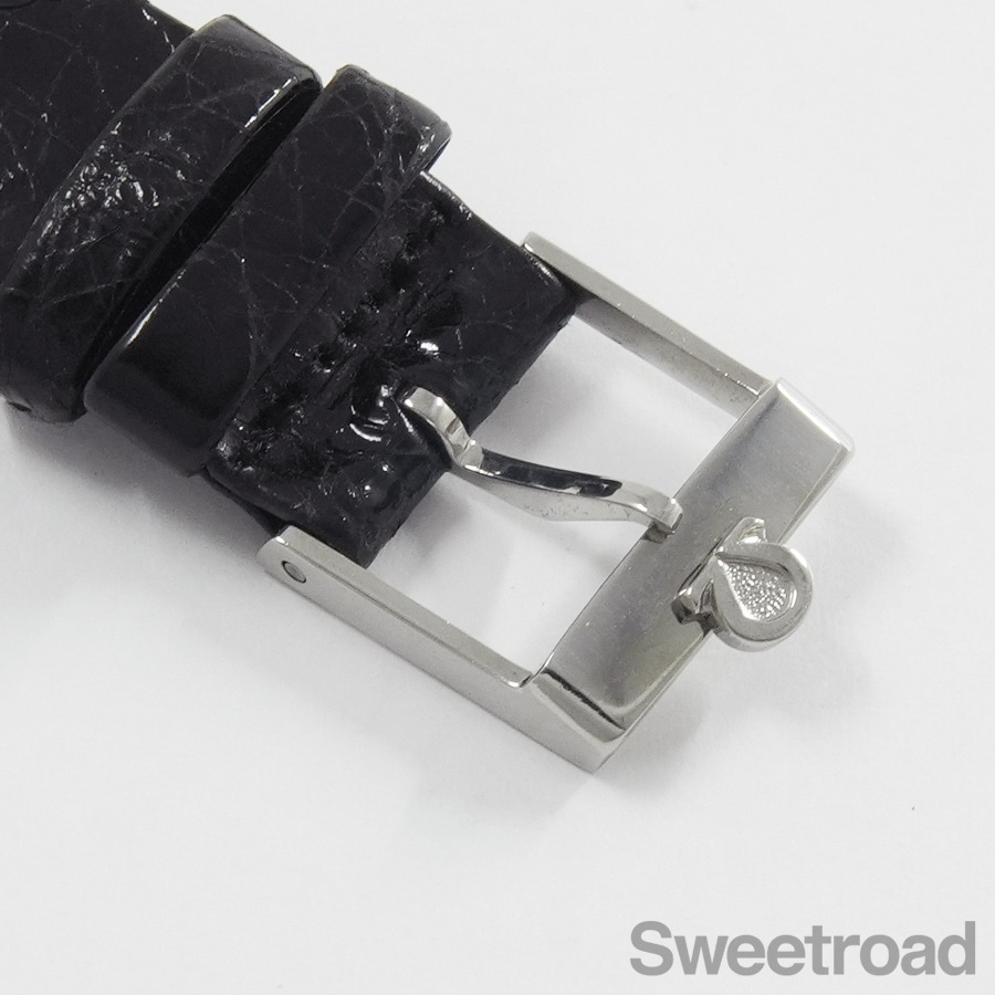 当時の純正革ベルトや尾錠が付属しており、裏蓋の保護シールも綺麗に残っています。