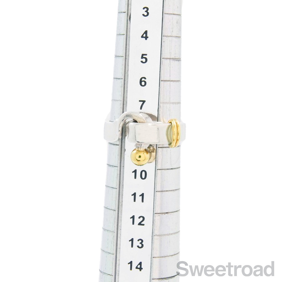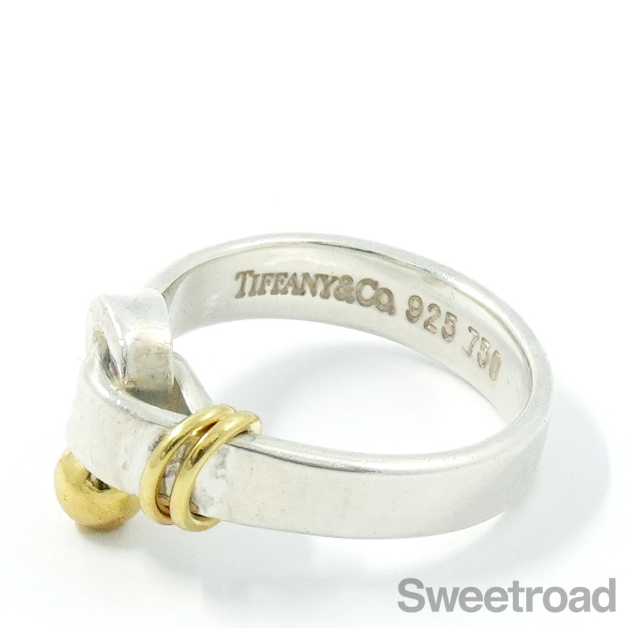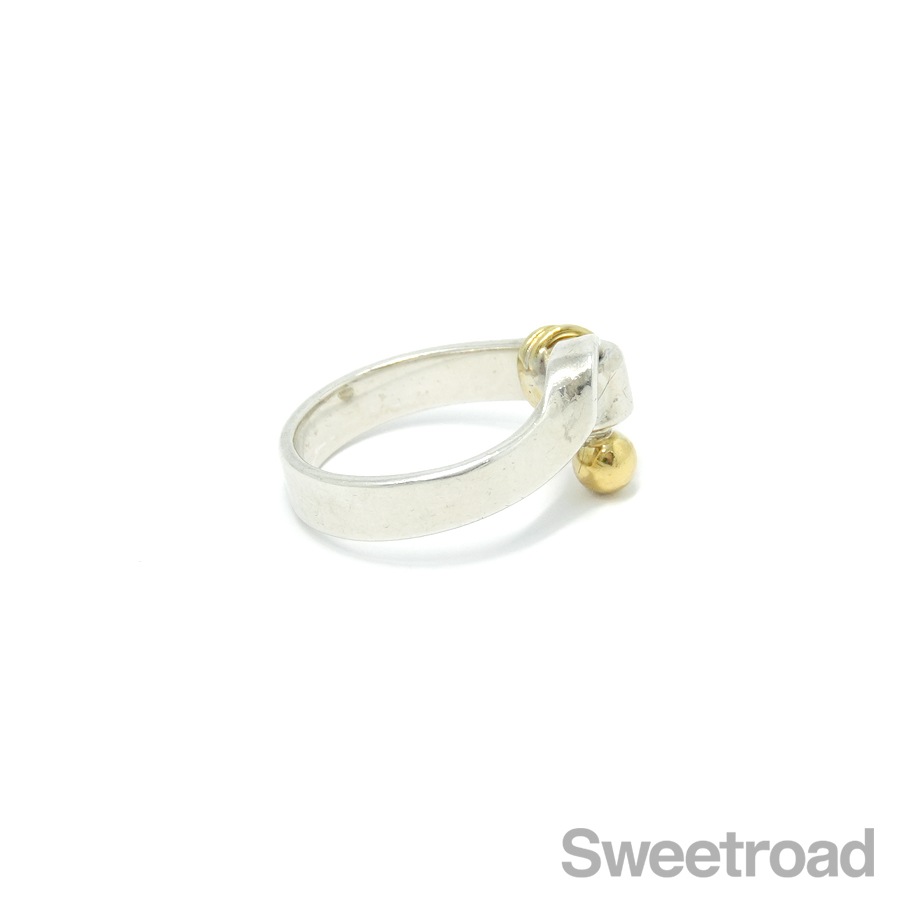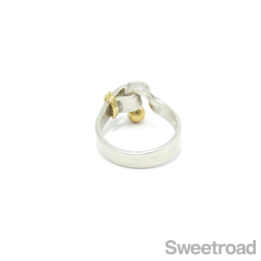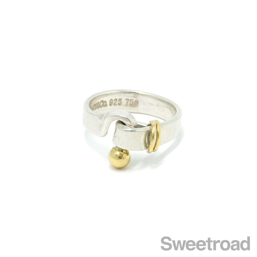 ティファニーの中でも人気のコレクション、フックアンドアイの「フラットワイヤーリング」が入荷しました。 18金イエローゴールドがさりげなくも印象的なコンビモデルで、ティファニーらしい独創的なデザインが目を惹くアイテムです。 お揃いのバングルと身につけるのもおすすめです。シルバー特有の小傷こそございますが、雰囲気を損なうようなダメージは見られません。 ブランド名や素材を表す刻印もしっかりと残っています。