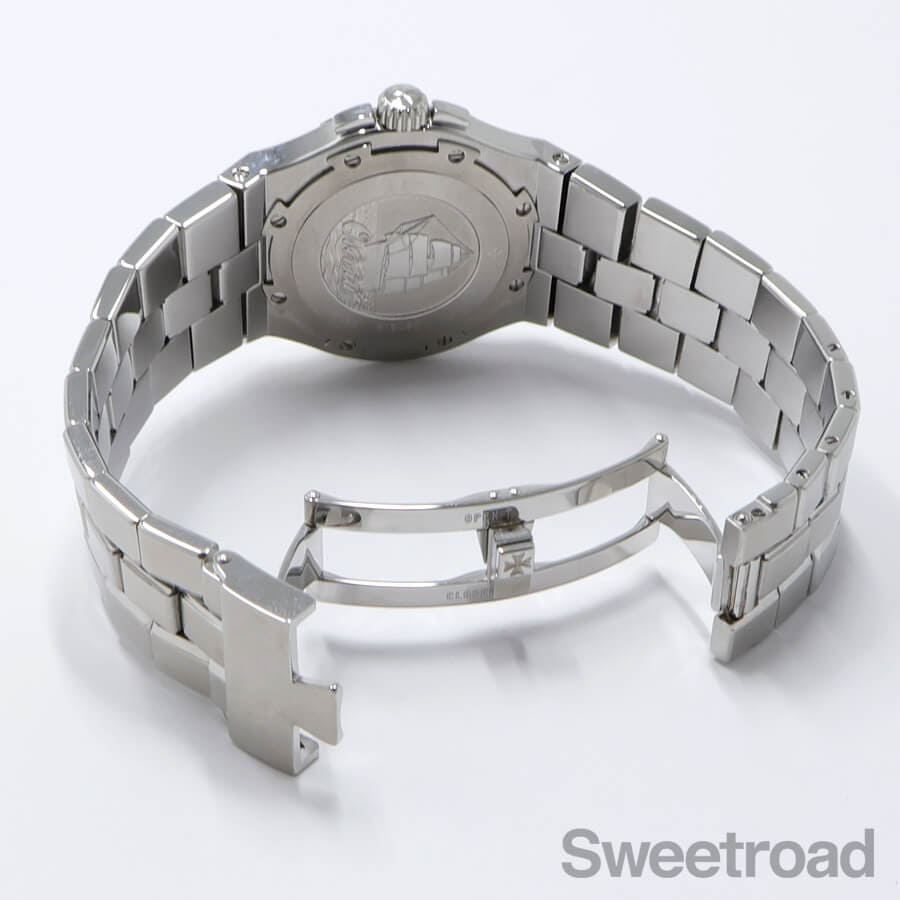 ベルトは特徴的なロックシステムが採用された、ヴァシュロン純正のステンレスブレスが装着されています。