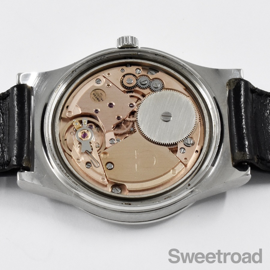 ケースは、36mm径のラージラウンド型が採用されており、後年に研磨や加工が一切施されいないノンポリッシュの状態。