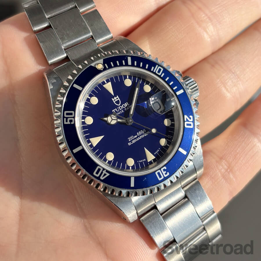 ベルトは、ダブルロック式のチューダー純正巻きブレス(1996年)を装着しており、ケースとほぼ同年式の組み合わせです。
