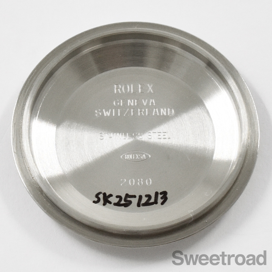 ケースバック刻印は「2080」です。 ※当初、裏蓋には型式番号が刻印されておりましたが、型式ごとに専用の裏蓋を用意することは非効率的なことから、5桁型式以降のモデルからは裏蓋などの共用パーツに型式とは別の識別番号を割り振る形に徐々に変更されていきます。