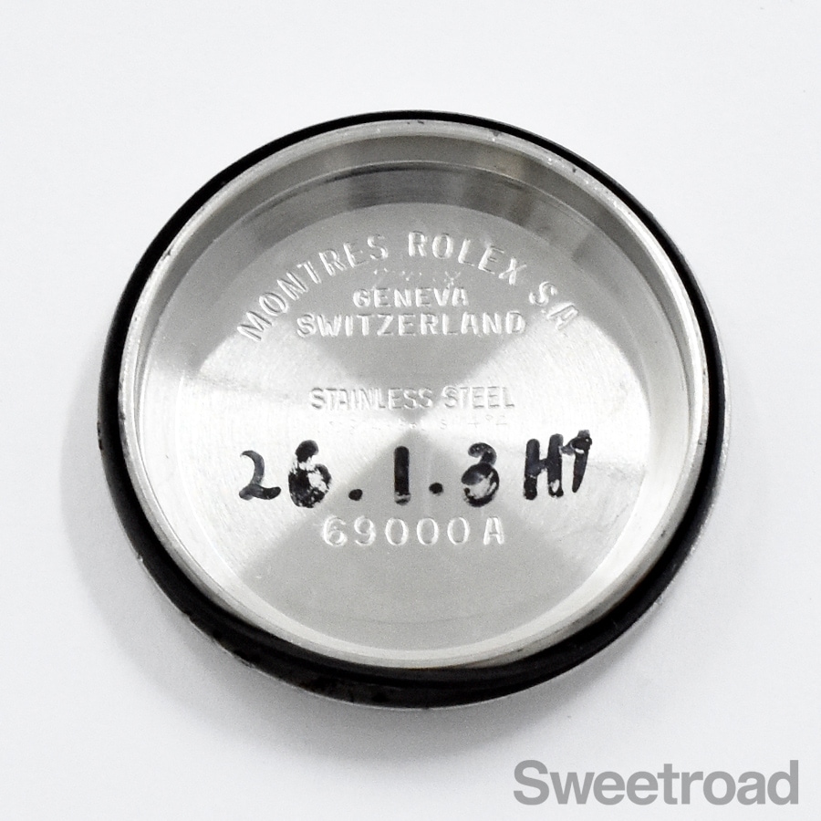 裏蓋内側の刻印は「Ref.69000A」仕様。 ※当時、ロレックスはケースと裏蓋を別々に製造しており、同型のケースが採用されている69173Gに69000Aの裏蓋が使用されているパターンは多く見受けられます。