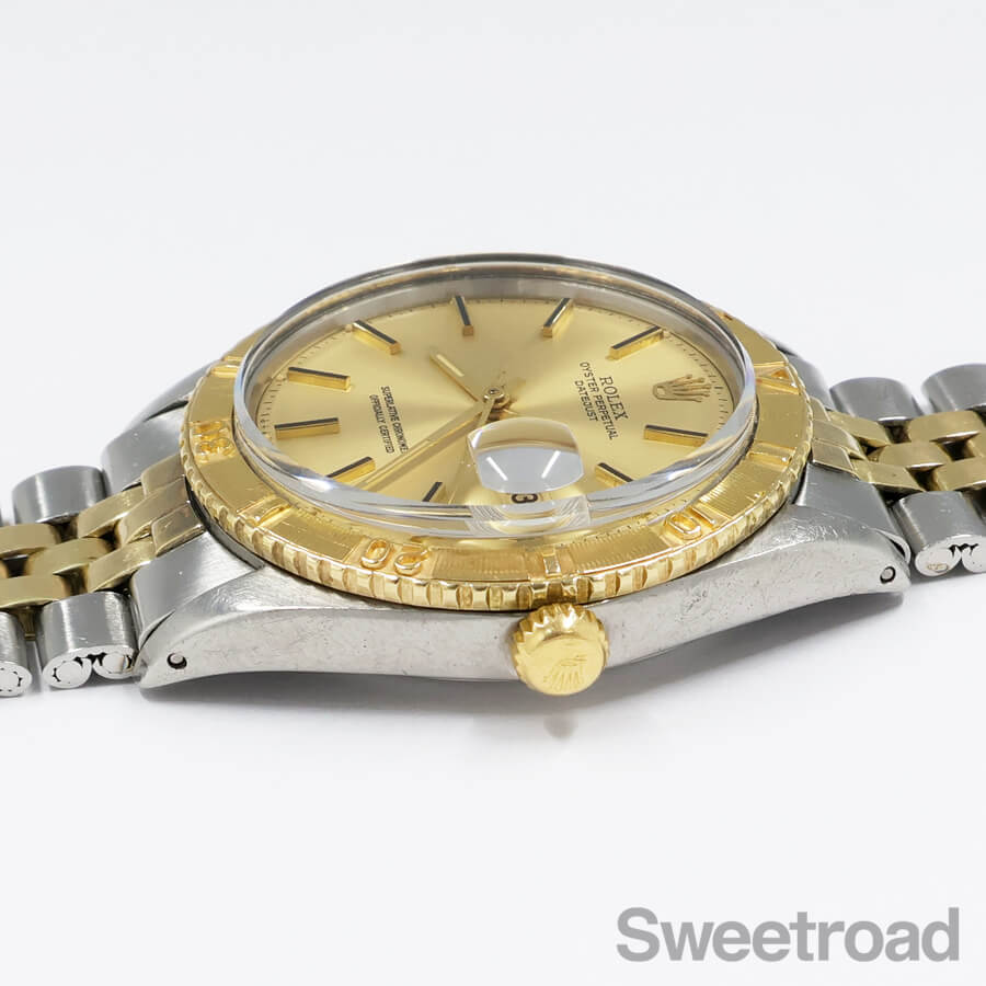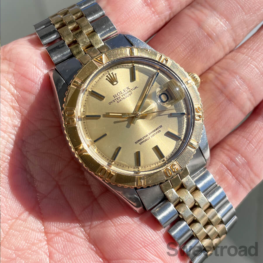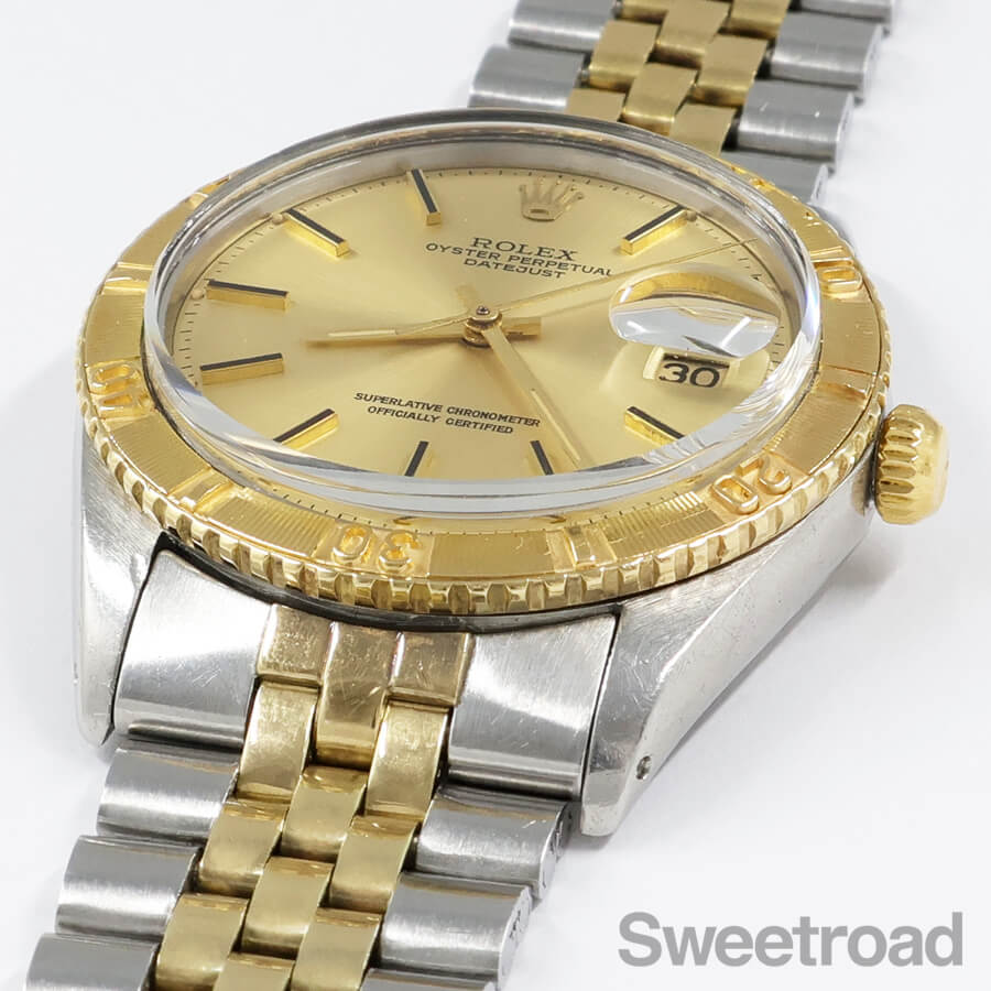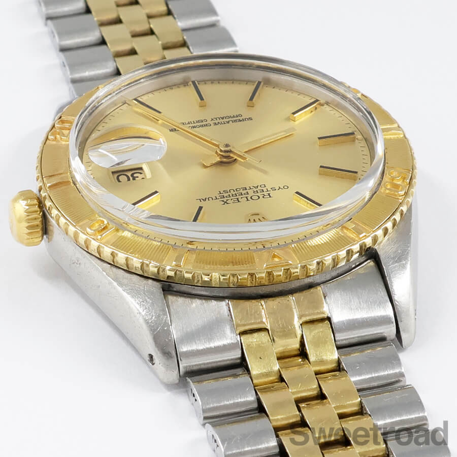 ベルトはロレックス純正のYGコンビジュビリーブレスを装着しており、ケース年式とほぼ同年式(1971年製)の組み合わせです。