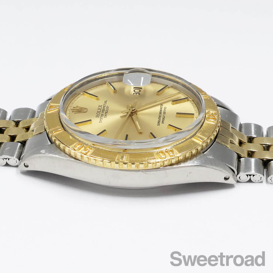 イエローゴールド製の回転ベゼルが採用された、ロレックスの高級機「デイトジャスト・サンダーバード/Ref.1625」。
