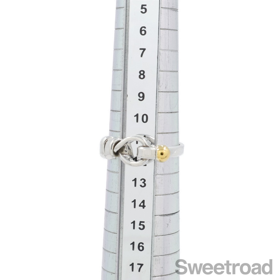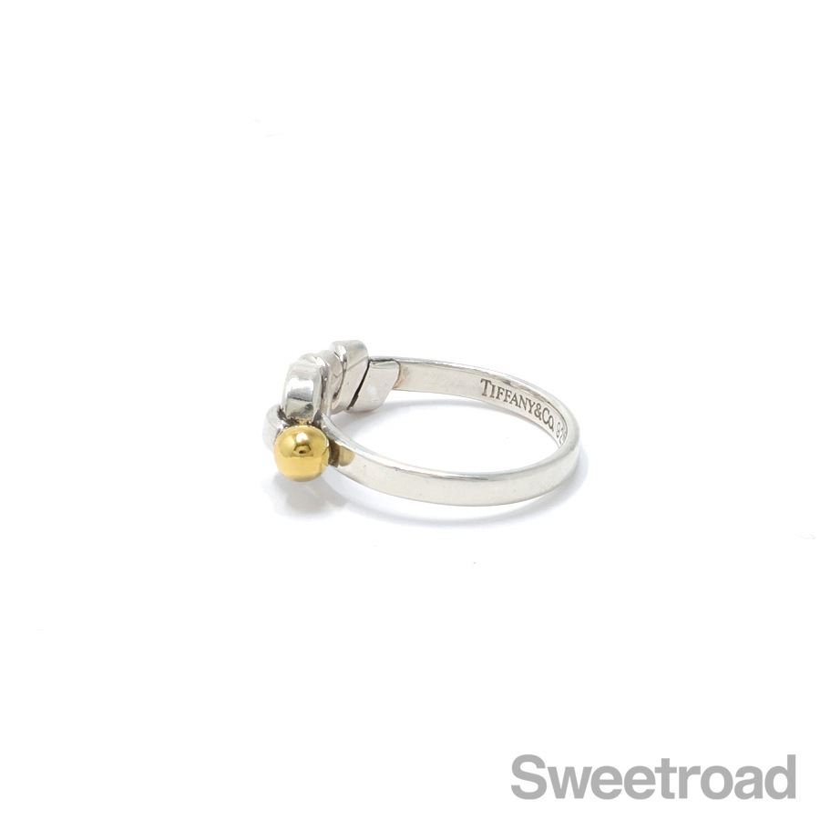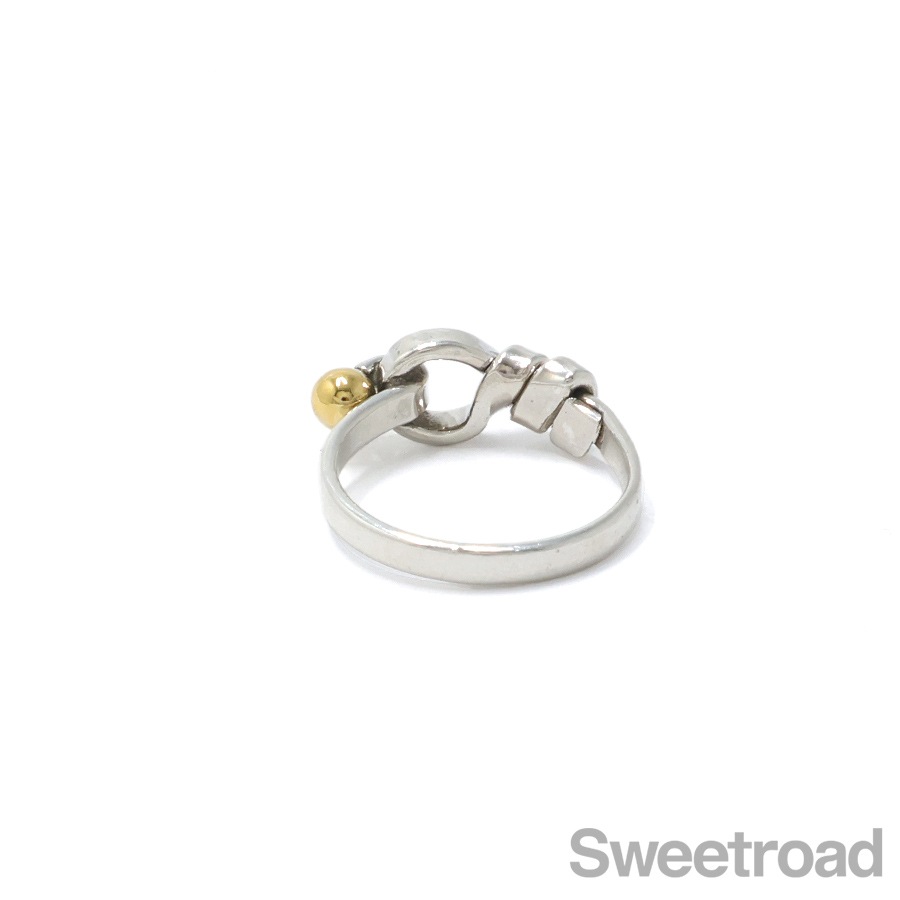 ティファニーコレクションの中でも高い人気を誇る「フックアンドアイシリーズ」の「フラットワイヤーリング」。ティファニーならではの独創的なデザインに、さりげなく主張する18金イエローゴールドが印象的なアイテムです。お揃いのバングルと身につけるのもおすすめです。シルバー特有の小傷こそございますが、全体的に目立つようなダメージは見られません。内側の刻印はしっかりと残っています。