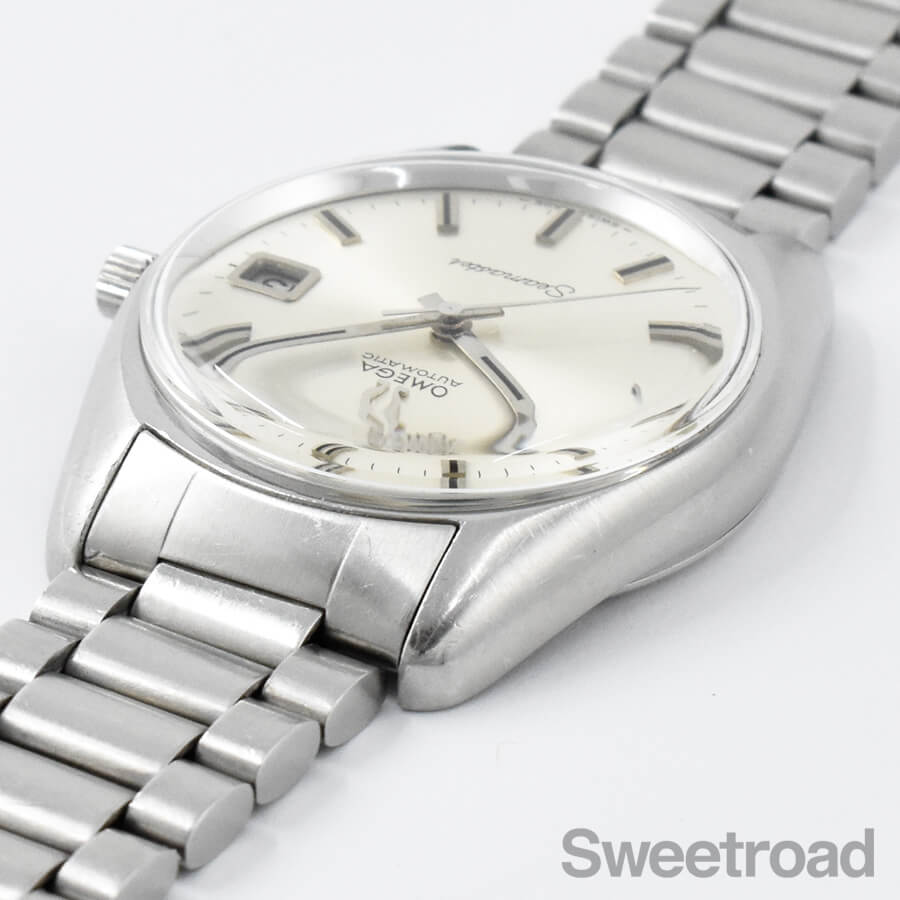 ベルトは、オメガ純正のステンレスブレスを装着しています。