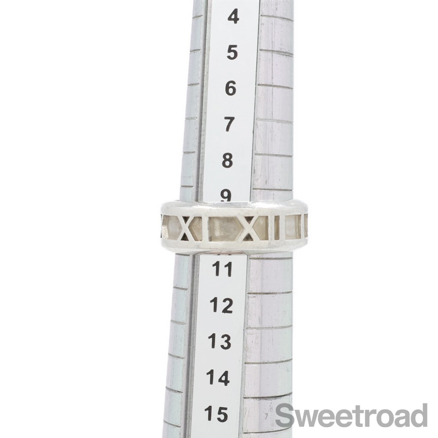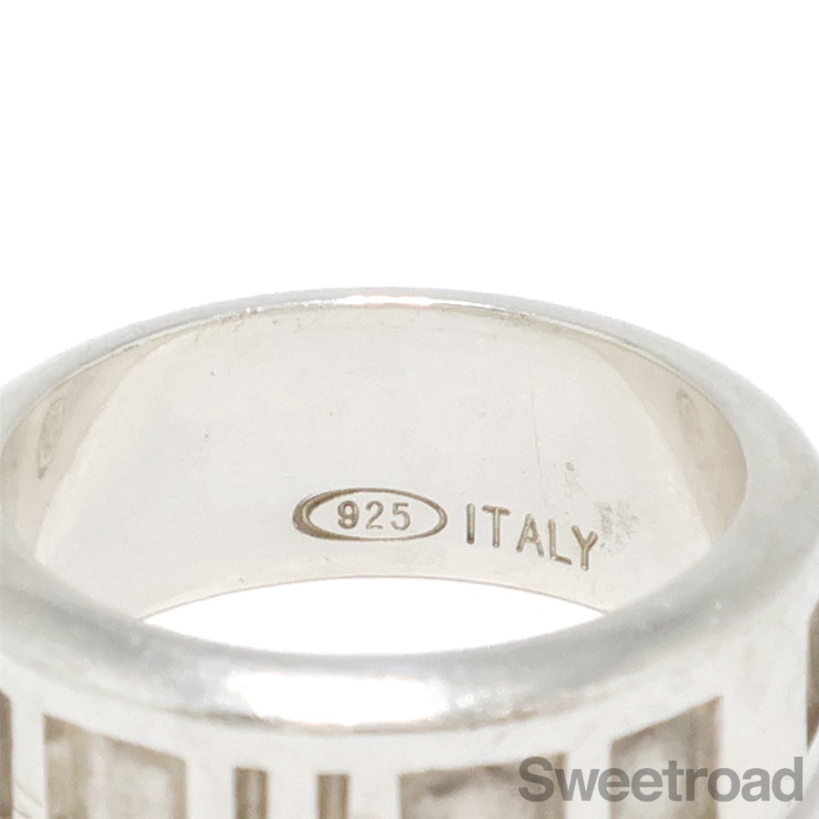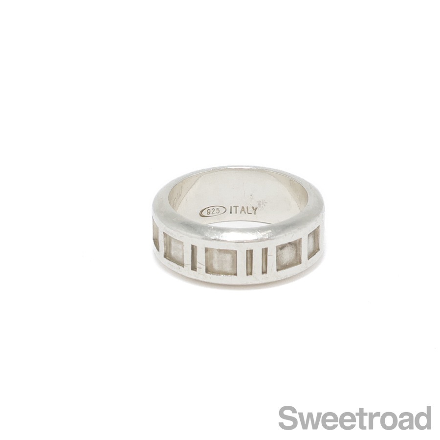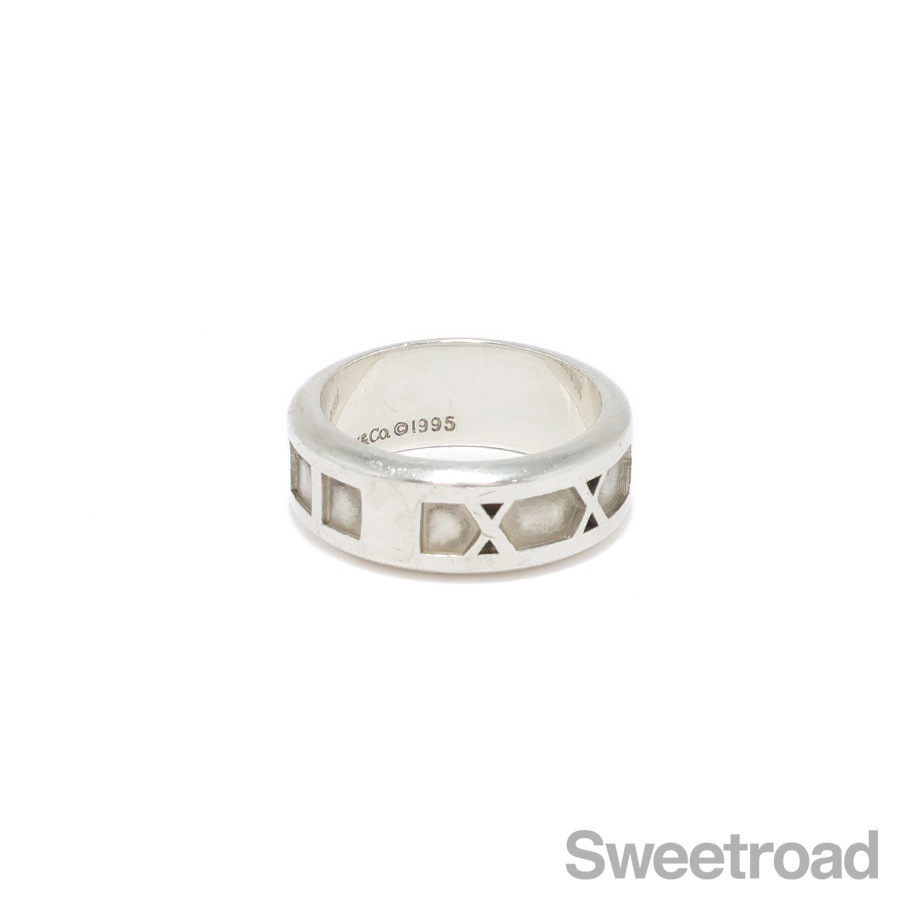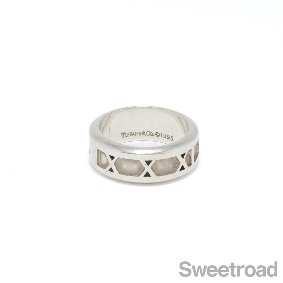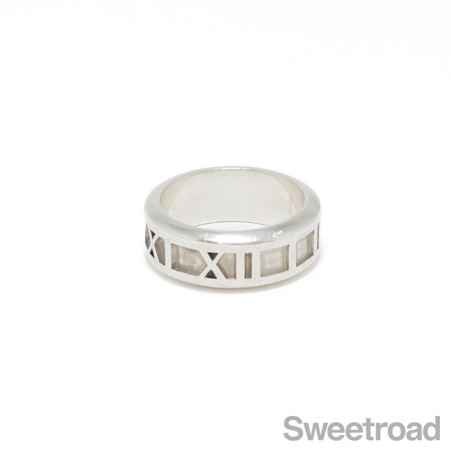 グラフィカルなローマ数字が目を惹く、ティファニーの「アトラスリング」。一目でティファニーとわかるデザインが魅力的なユニセックスモデルです。シルバー特有の小傷や細かな打ち傷こそございますが、全体的に雰囲気を損なうようなダメージは見られません。内側の刻印もしっかりと残っています。