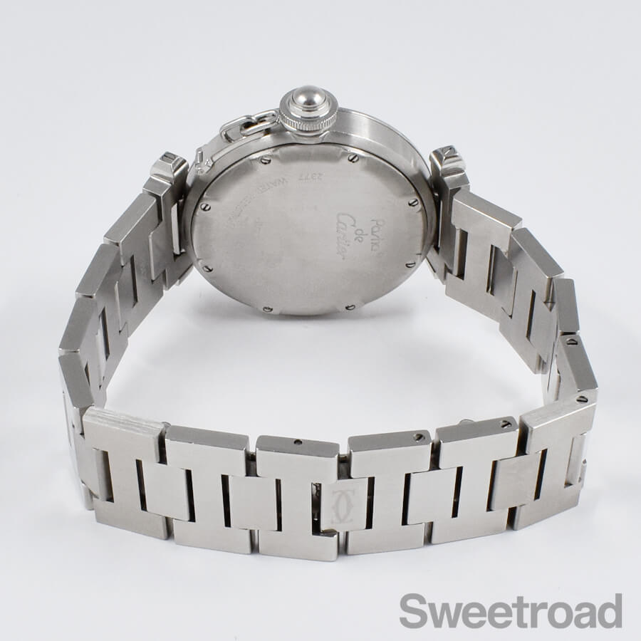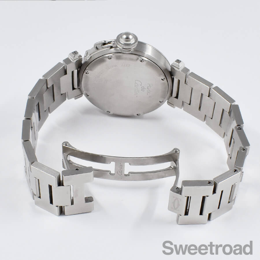 ベルトは両開き式のカルティエ純正ステンレスブレスを装着しています。